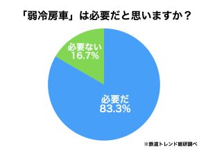 【調査アーカイブ】夏の「弱冷房車」暑い日でも83.3%の人が「必要だ」と回答