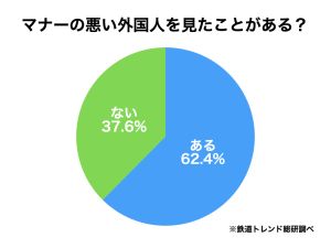 【調査アーカイブ】駅や電車でマナーの悪い外国人「見たことがある」と62.4%が回答