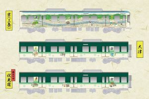 京阪電気鉄道13000系「東海道五十七次」浮世絵タッチのラッピング