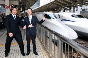 【東海道新幹線】JR東海の社長と新日本プロレス棚橋社長がエアギター!? 再びコラボ
