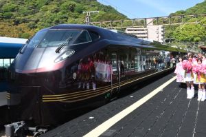 【静岡】両陛下を支える「お召し列車」河津駅に停車、特別列車「なごみ」に見物客