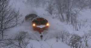 白銀の世界を赤い機関車が雪煙を上げて駆けていく。 豪雪地帯を走るJR宗谷線の除雪を担うDE15ラ...