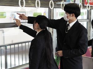 【北九州モノレール】高校生が車両にステッカー装飾「癒し」テーマの車窓デザイン
