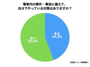 【調査アーカイブ】電車内で自ら安全対策する人は44.2%。不審者の確認、逃げ道の確保など
