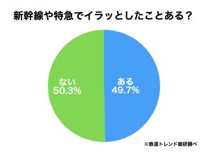 【調査アーカイブ】約半数の人が「新幹線や特急列車でイラッとした」経験があると回答
