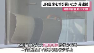 【逮捕】「遅延が腹立つ」列車の座席をカッターナイフで切り裂き、同様被害300件