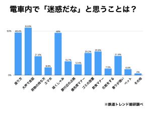 【調査アーカイブ】電車内で「迷惑だな」と思うこと、53.9%の人が「大声での会話」と回答